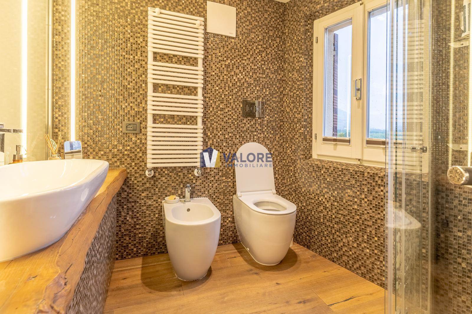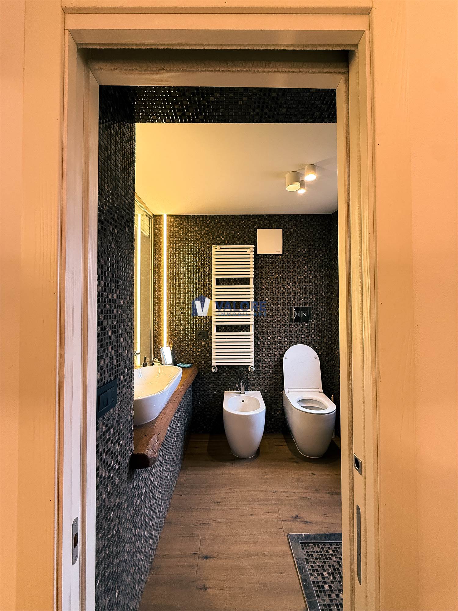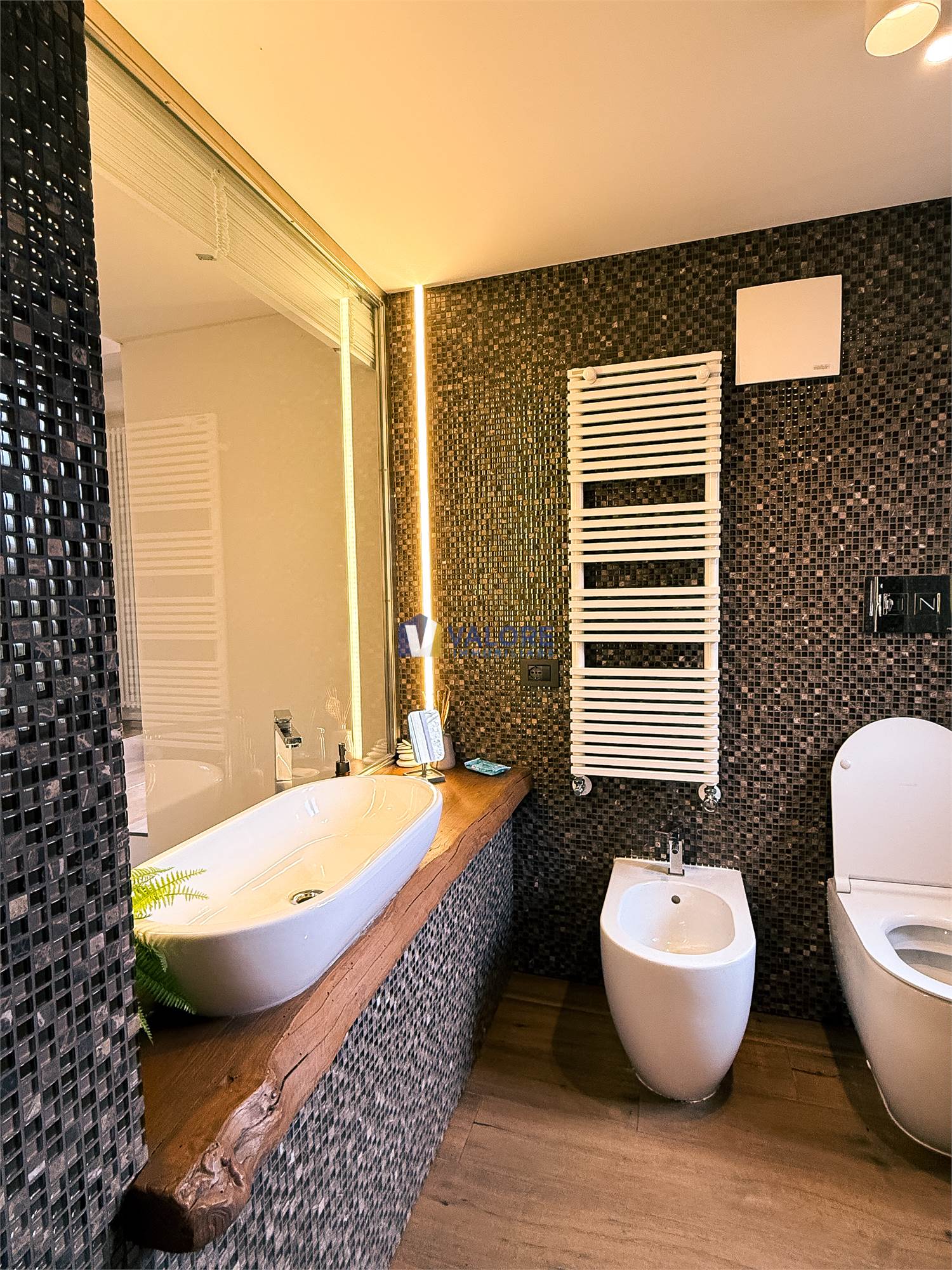 The property, fully furnished with high-quality furniture, features luxury finishes, bathrooms with heated towel rails and suspended sanitary ware, an alarm system with cameras, a sound system, and Wi-Fi connection.