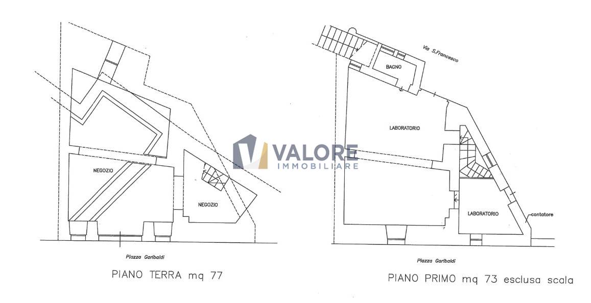 The property, located on the ground floor, consists of two rooms: a street-facing space for public sales, complete with a counter, and a second room used as a warehouse.