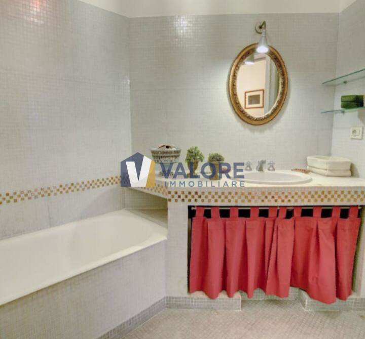 L'appartamento è composto da un ampio salone con zona pranzo, una cucina abitabile, due camere da letto di cui una padronale con una spaziosa cabina armadio e due bagni di cui uno con doccia e l'altro con vasca.