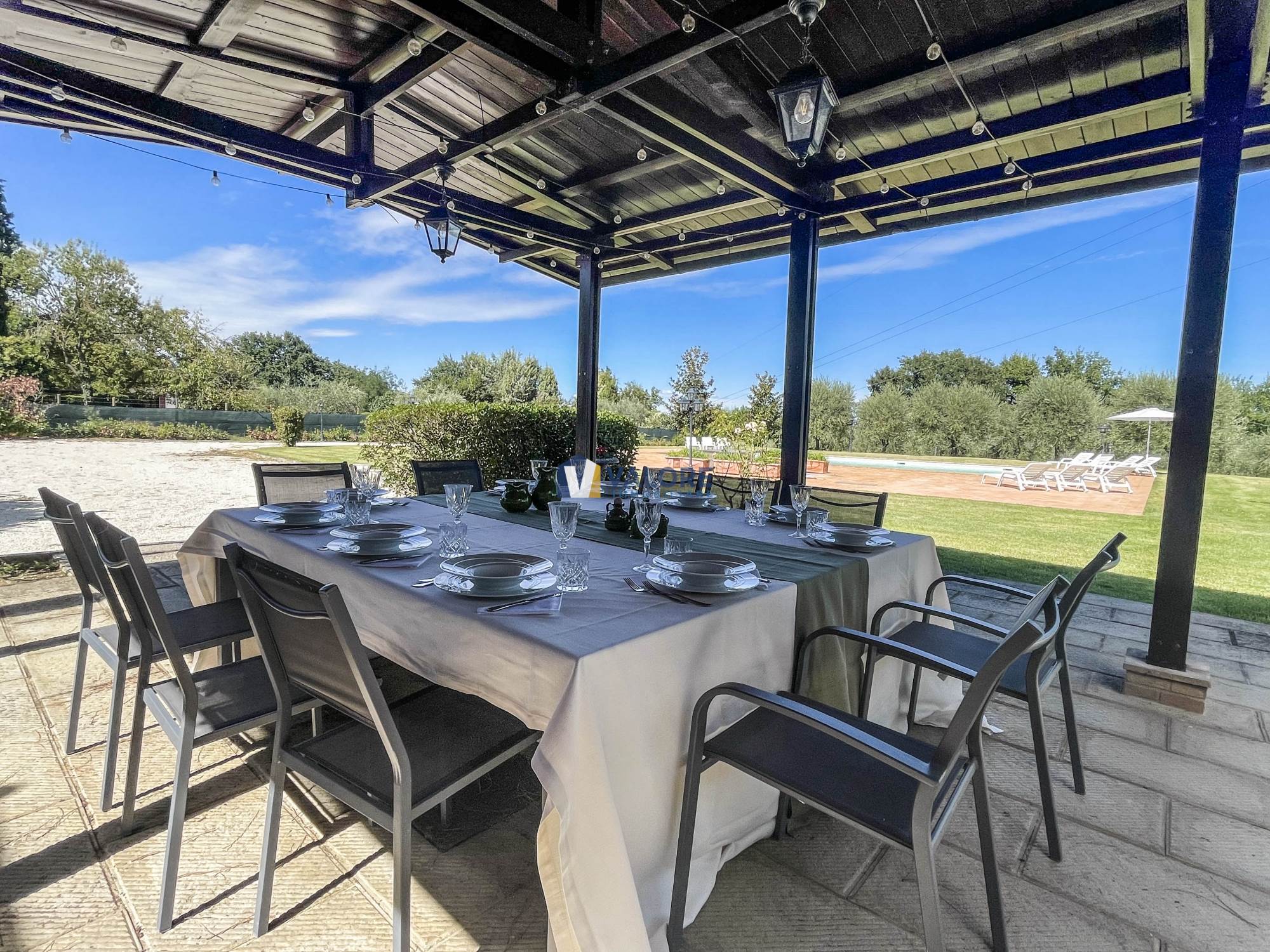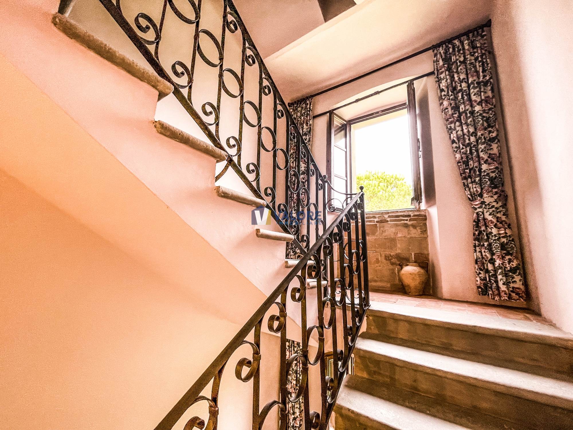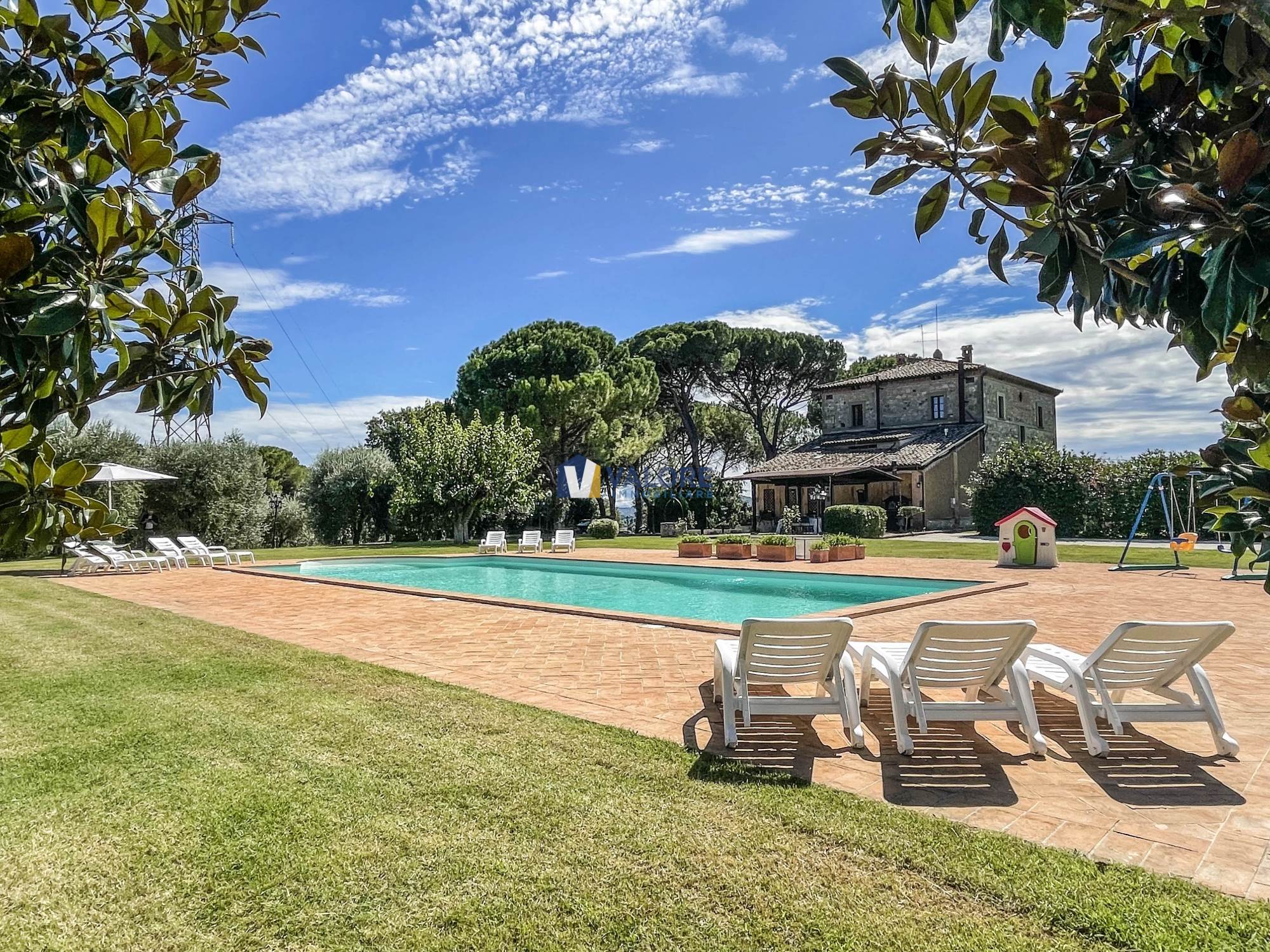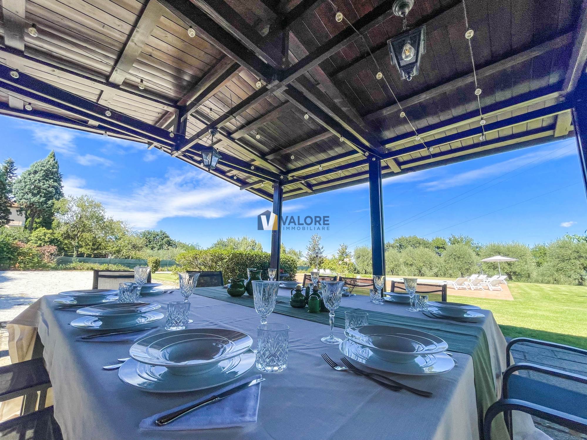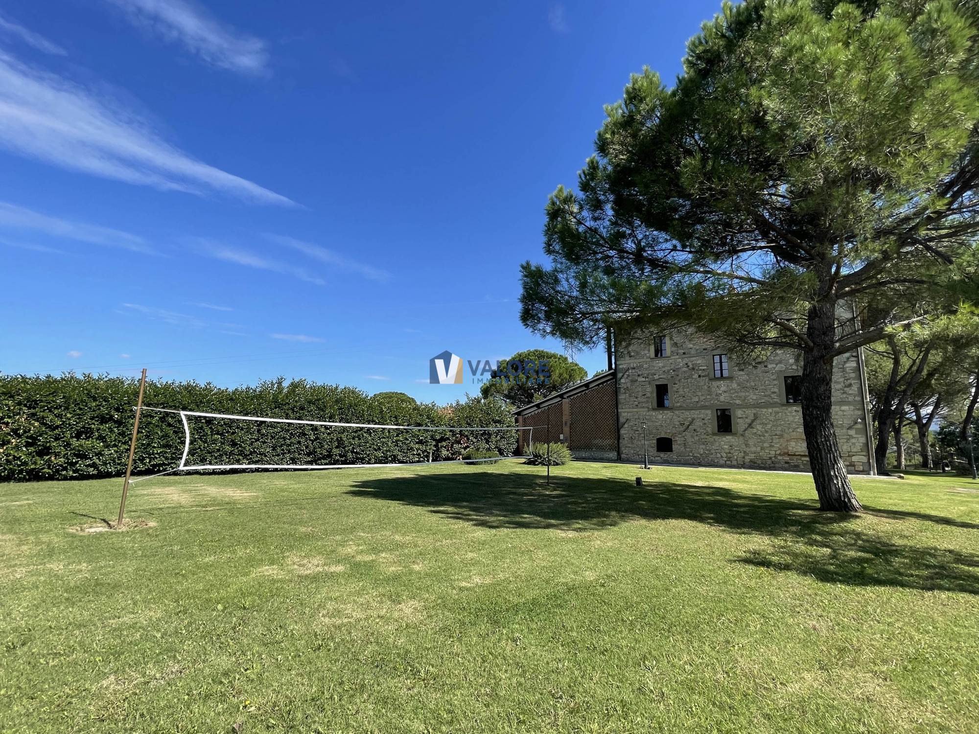 La proprietà dispone di un rigoglioso parco privato completamente recintato di 4,5 ettari con numerosi alberi, una splendida piscina panoramica, una zona barbecue con forno a legna ed un'ampia area sportiva attrezzata con campo da calcetto e rete da pallavolo.