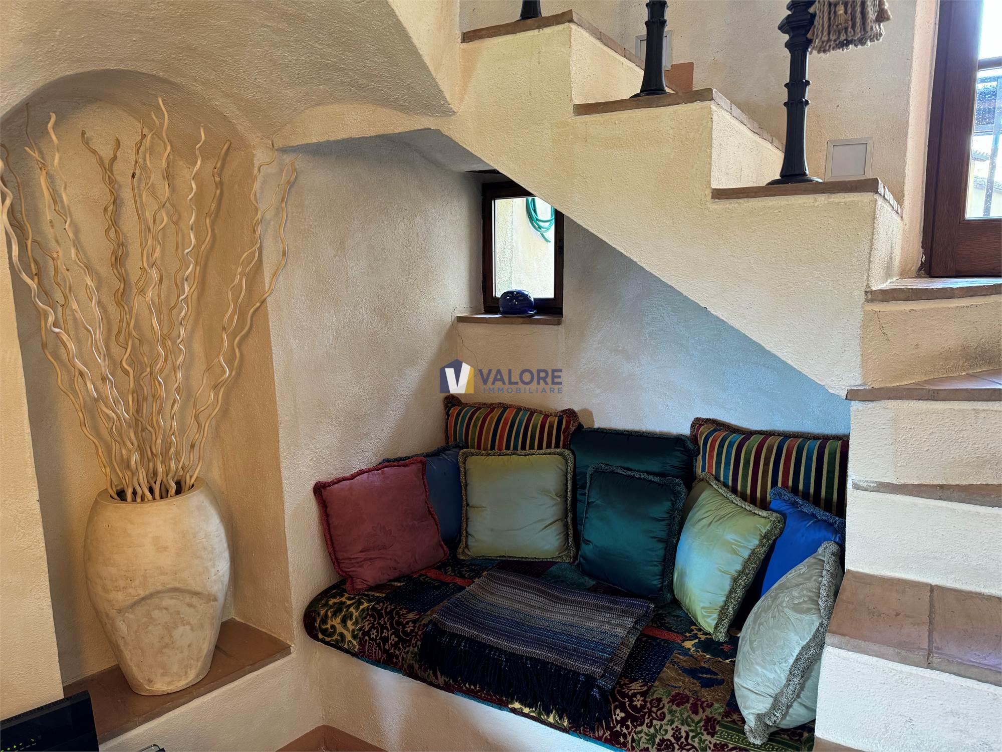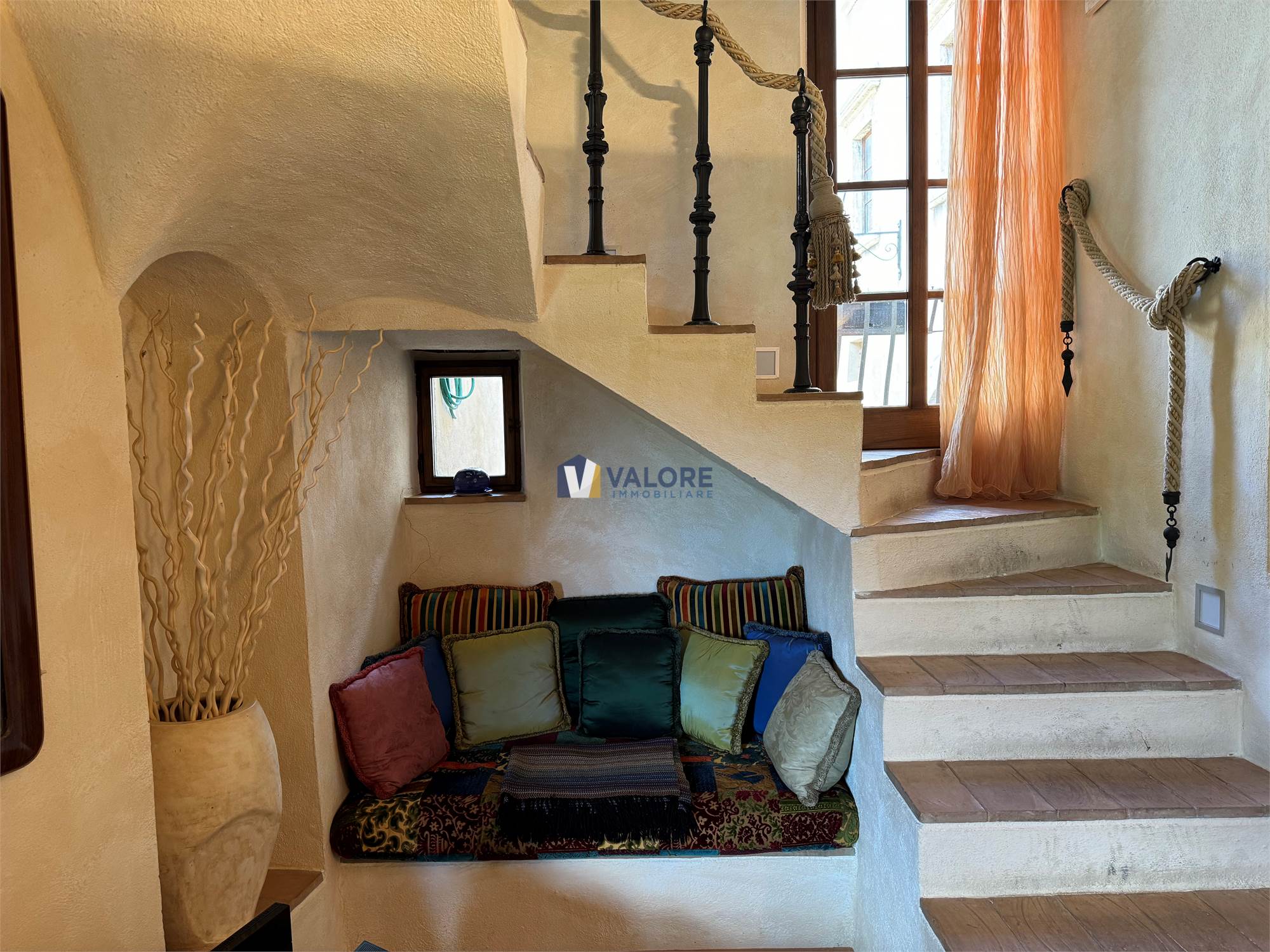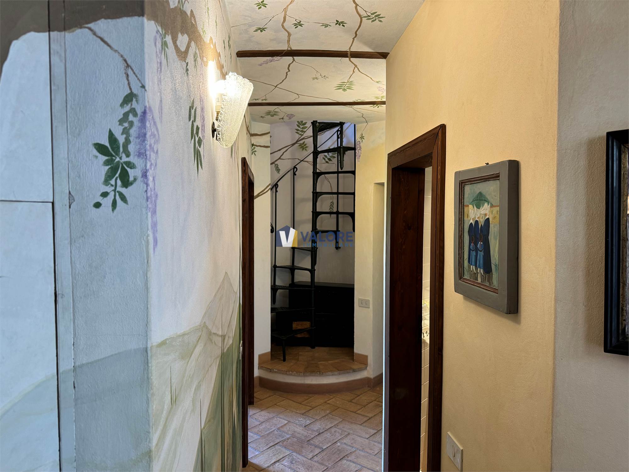 Gli ambienti principali (il salone e la zona notte) sono dotati di impianto di aria condizionata. Ogni spazio è rifinito con materiali scelti con passione: cotto, legno, ferro battuto, travi a vista e decorazioni pittoriche uniche contribuiscono a creare un’atmosfera autentica e raffinata.