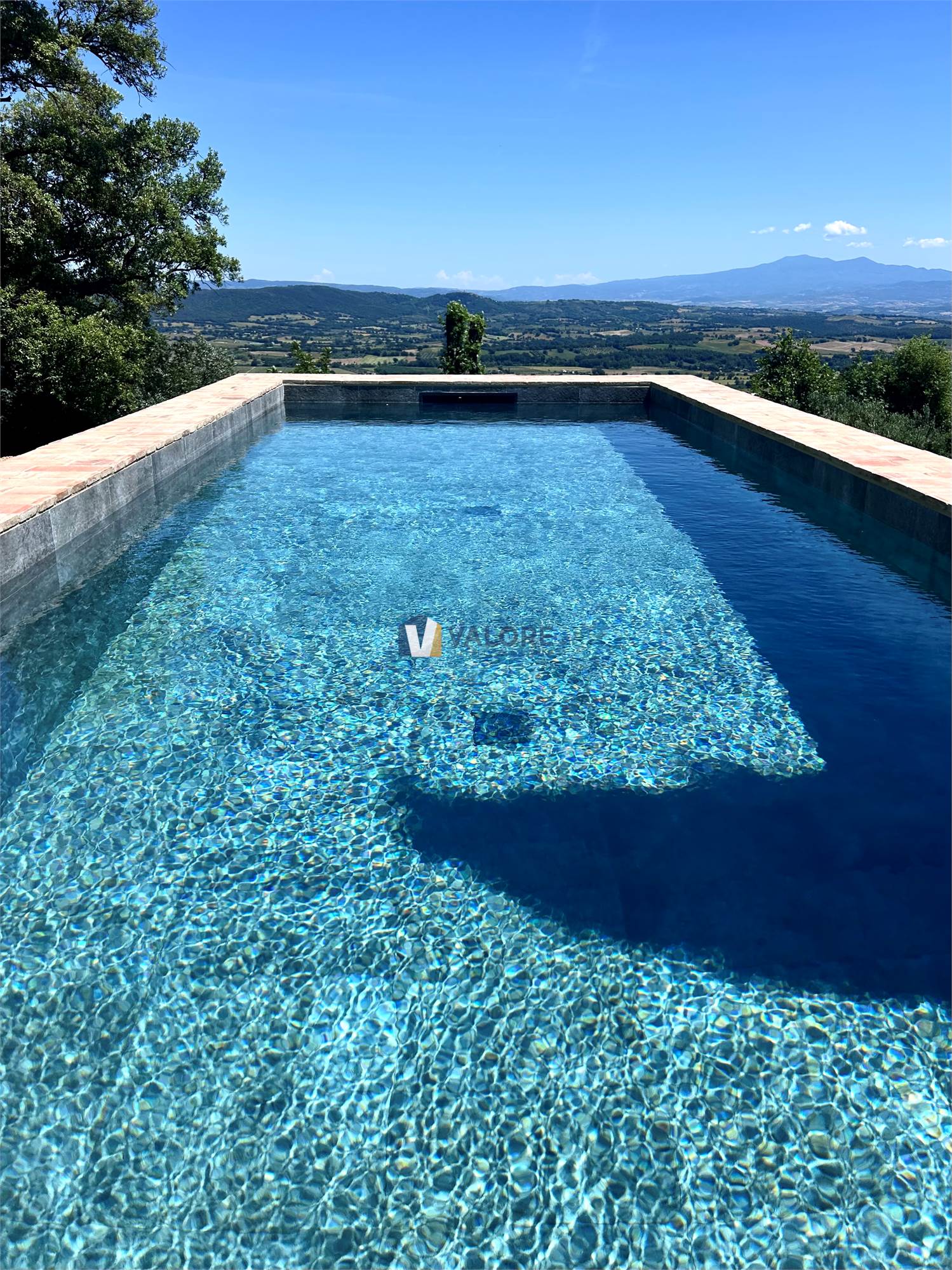 Dotato di acqua potabile proveniente dall'acquedotto del Fiora, dispone di una splendida piscina panoramica di 3 metri x 10 con rivestimento in pietra grigia affiancata da un locale tecnico di circa 12 mq.
