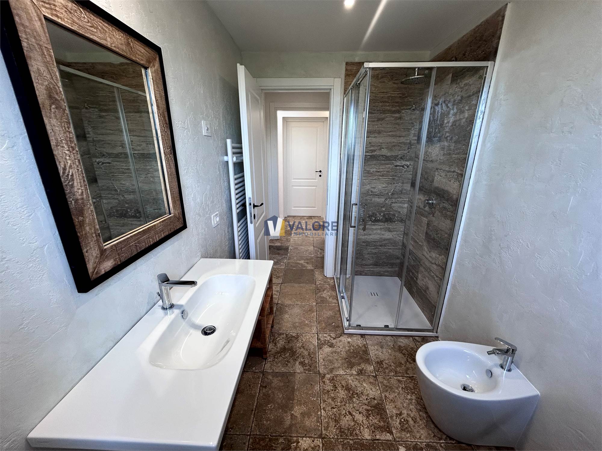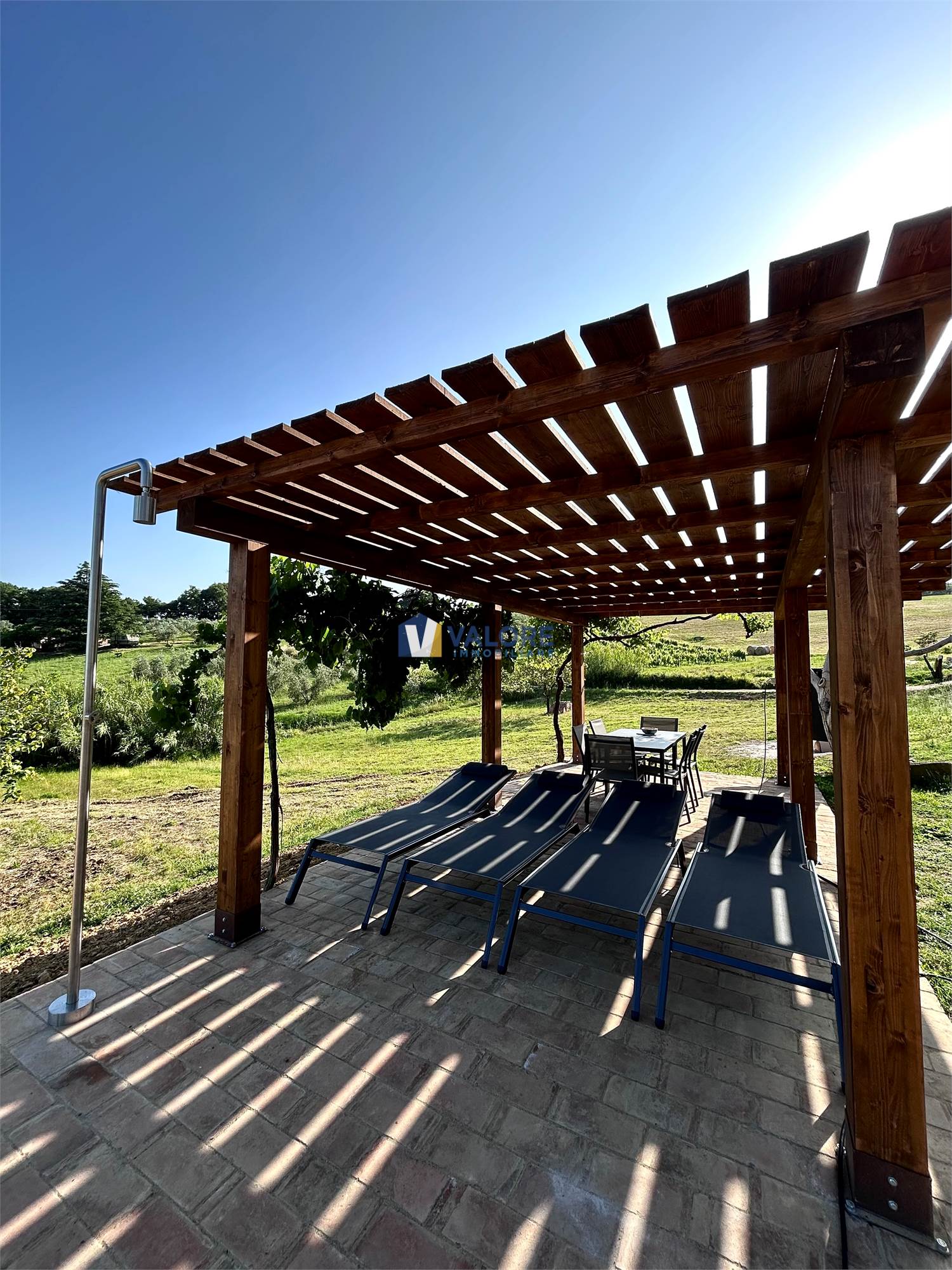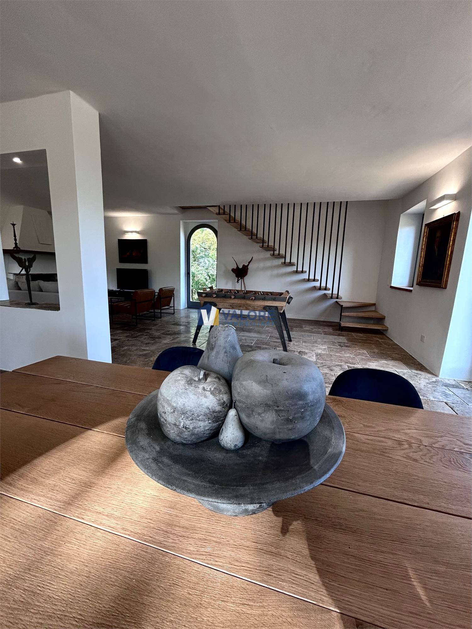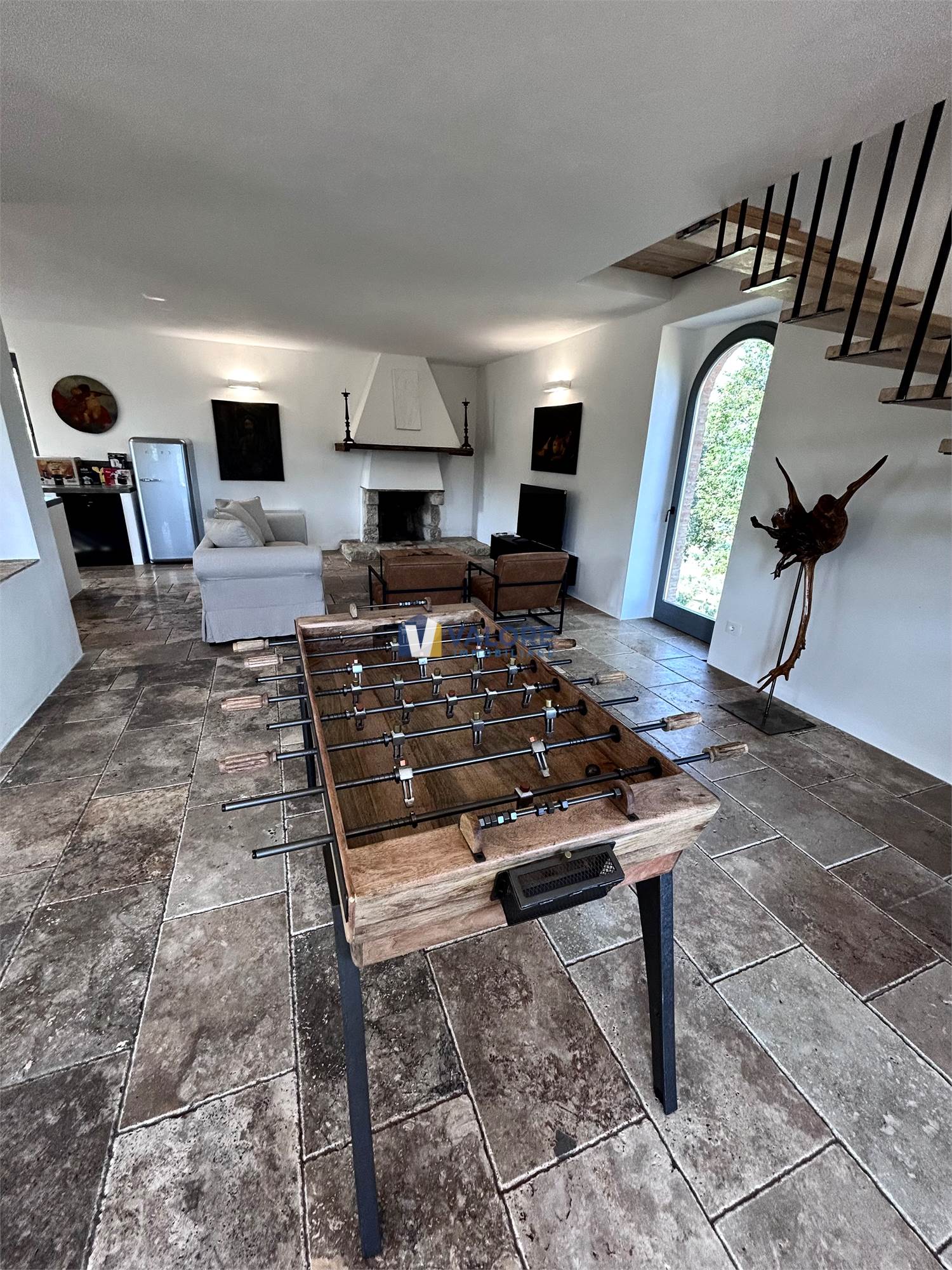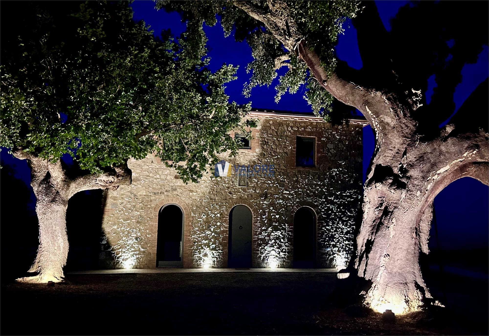 Il casale, con una superficie di circa 280 mq distribuiti su tre livelli, è completamente arredato con mobilio nuovo di elevata qualità ed e circondato da un ampio terreno di circa 5 ettari, suddiviso tra seminativo, vigneto, frutteto, castagneto e noceto, oltre a un meraviglioso bosco con alberi secolari che dona privacy all’intera tenuta.