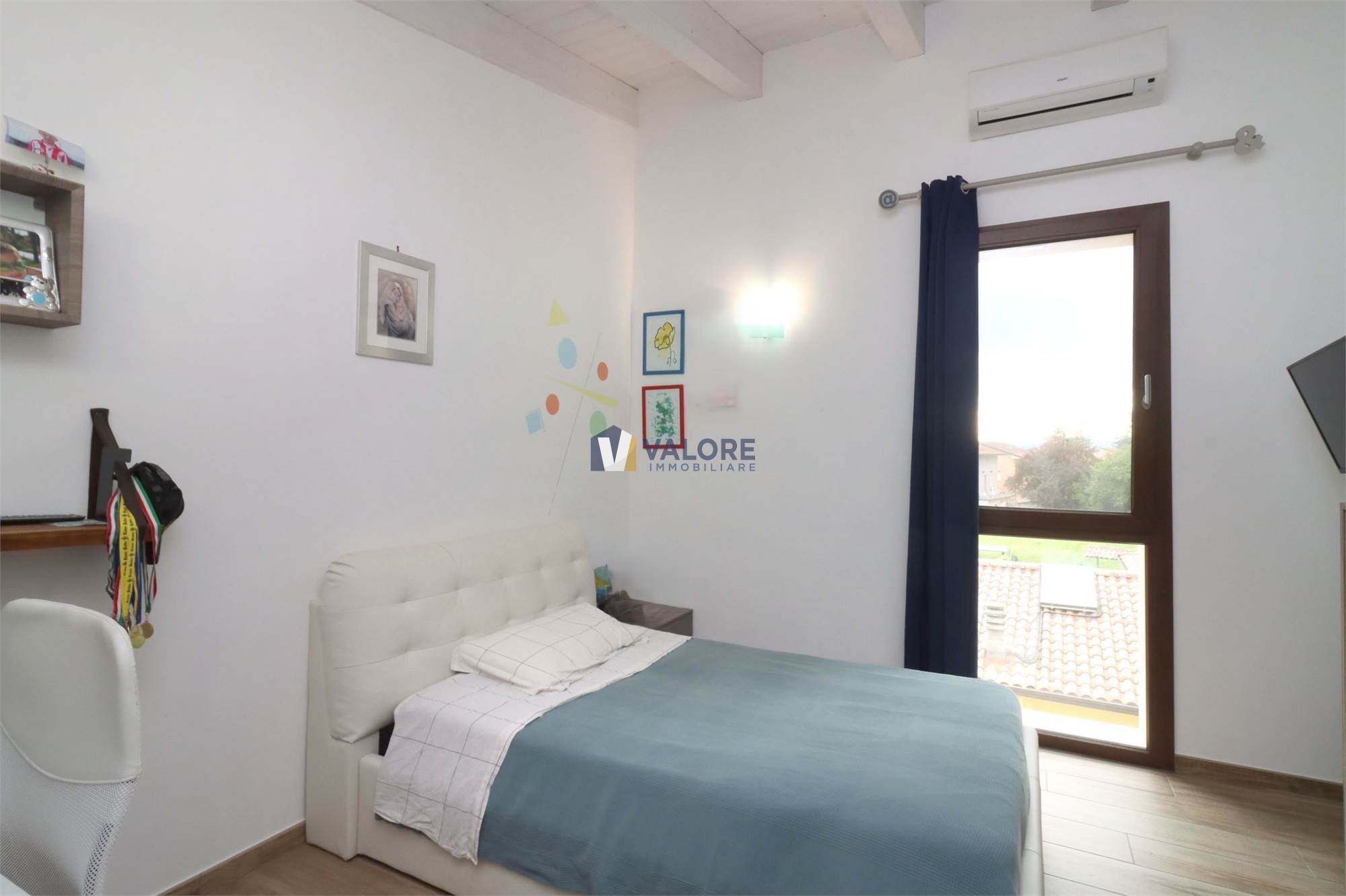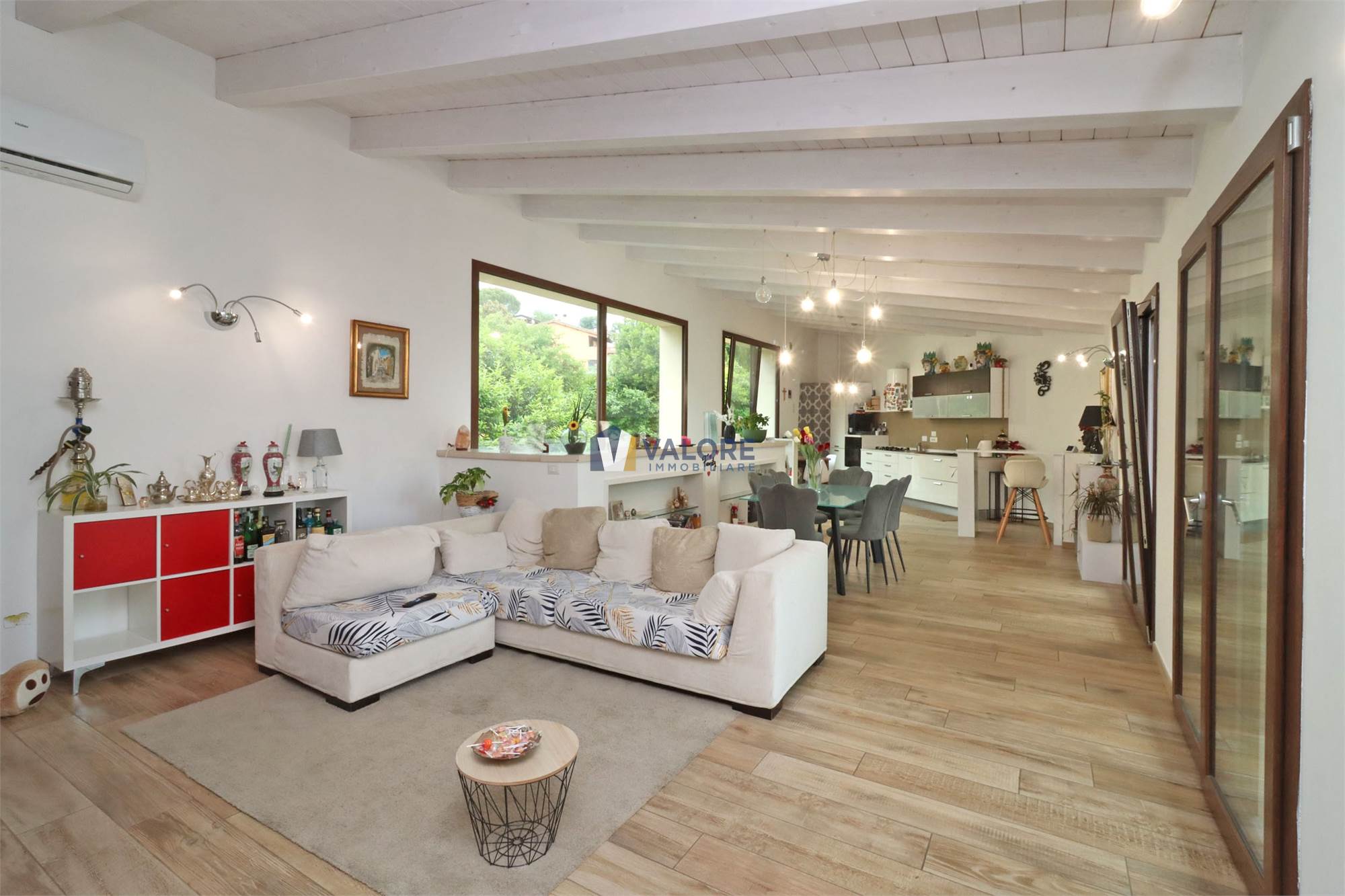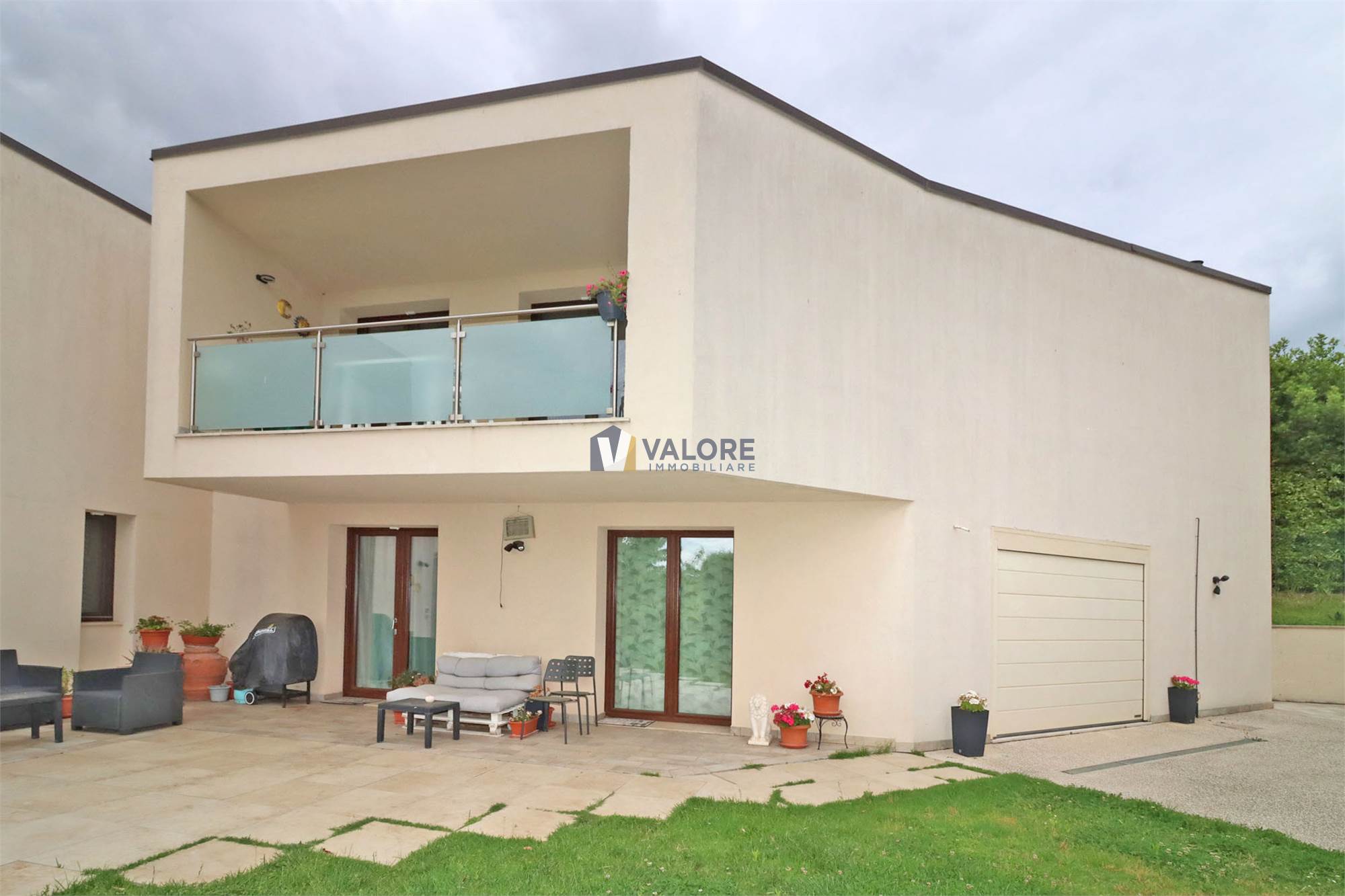 Presenta portone blindato, infissi in alluminio con doppio vetro e apertura a ribalta, impianto fotovoltaico e solare termico, impianto di condizionamento e vasca di raccolta per le acque piovane.