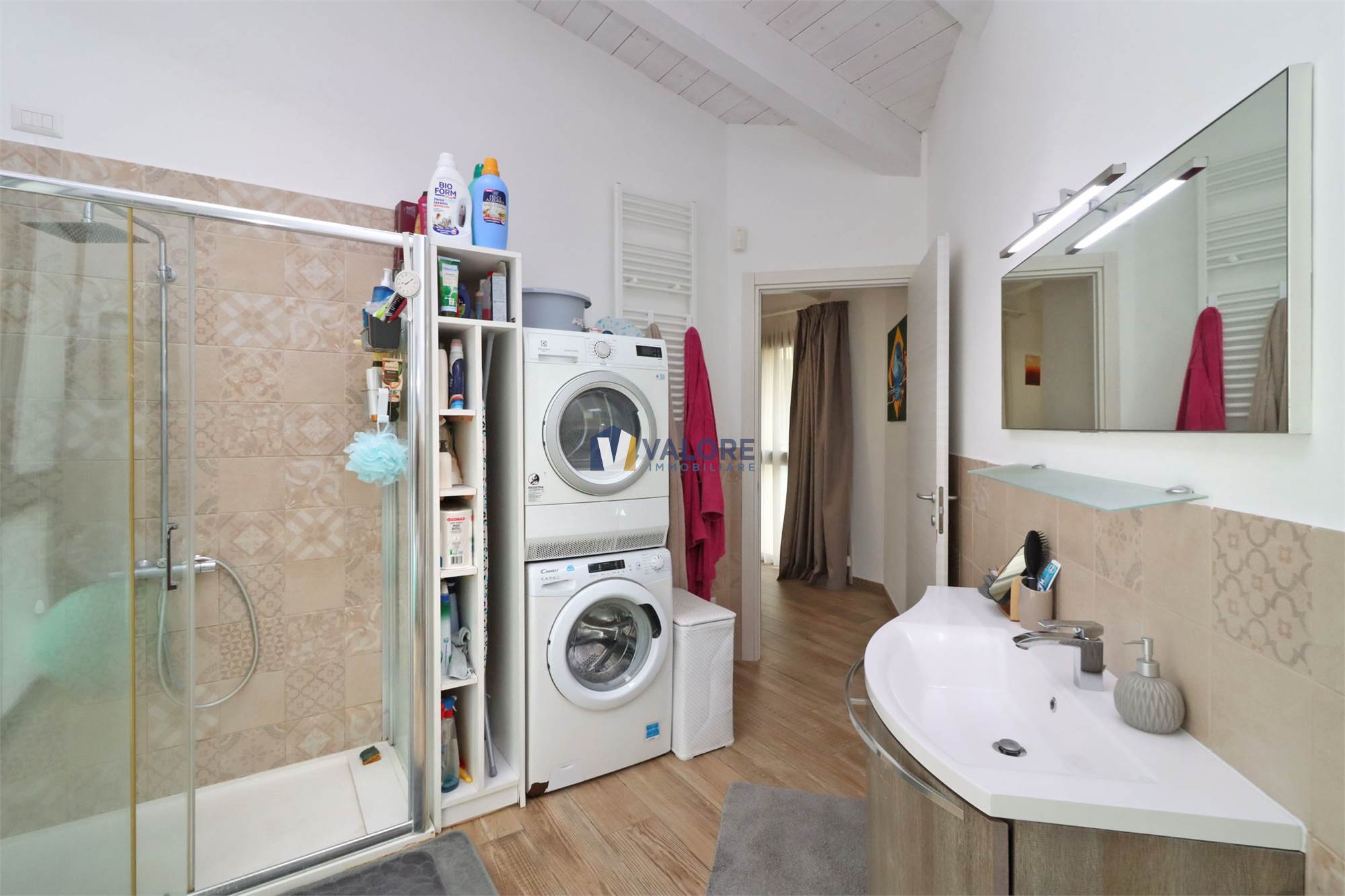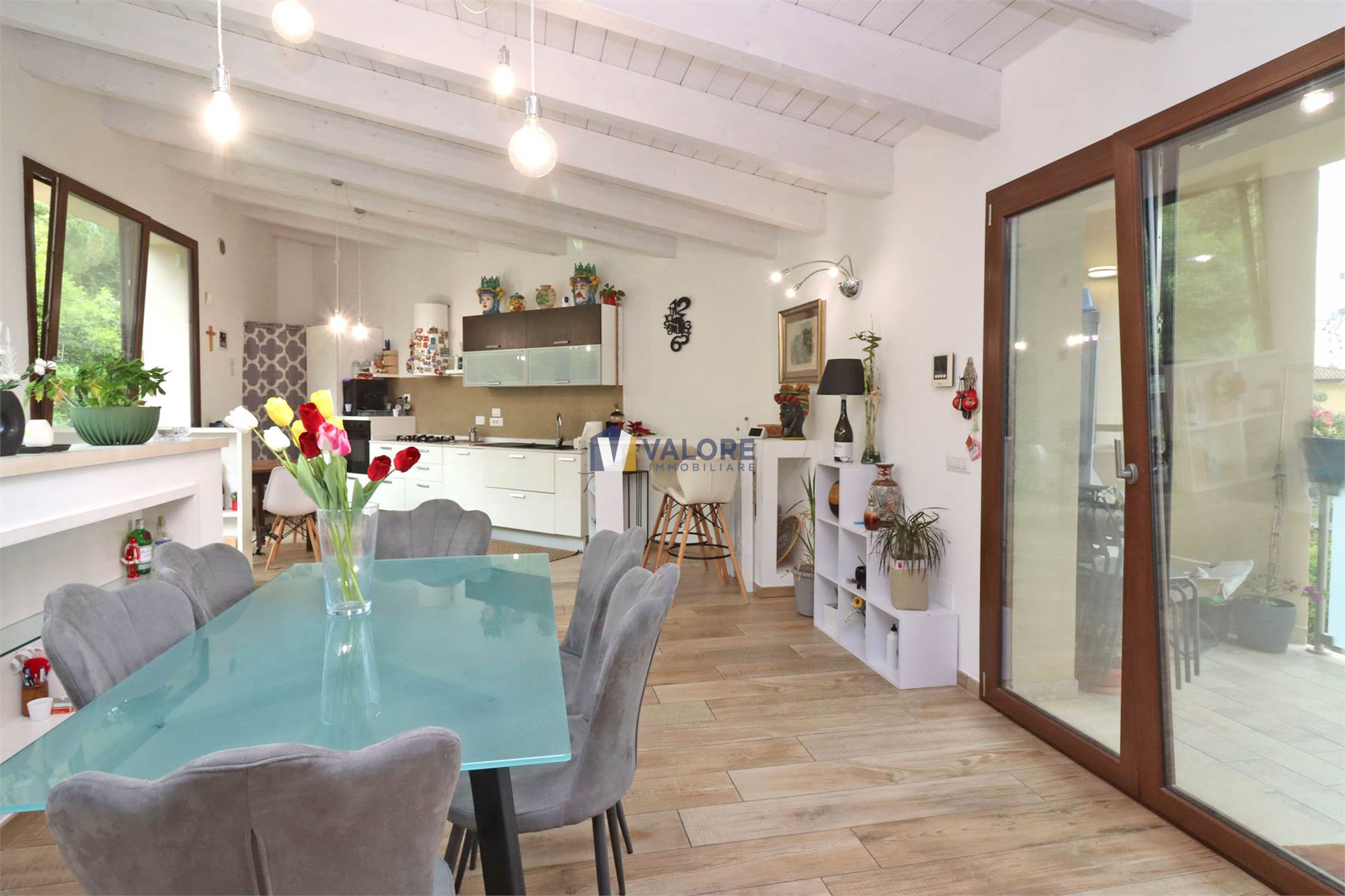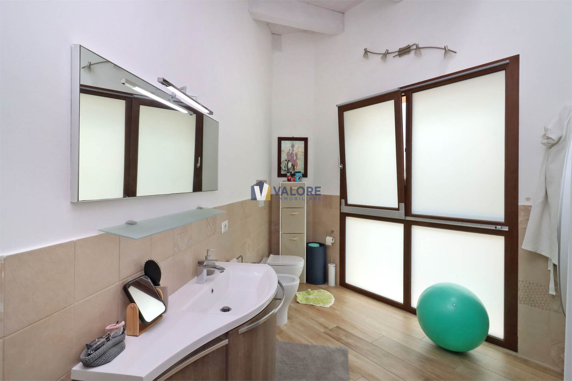 Presenta portone blindato, infissi in alluminio con doppio vetro e apertura a ribalta, impianto fotovoltaico e solare termico, impianto di condizionamento e vasca di raccolta per le acque piovane.