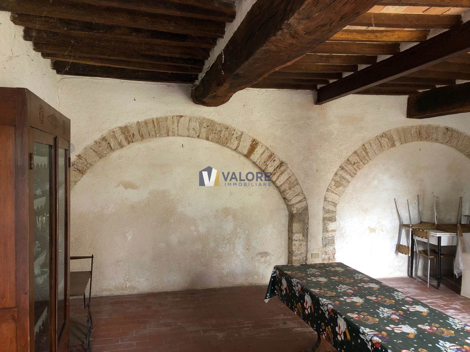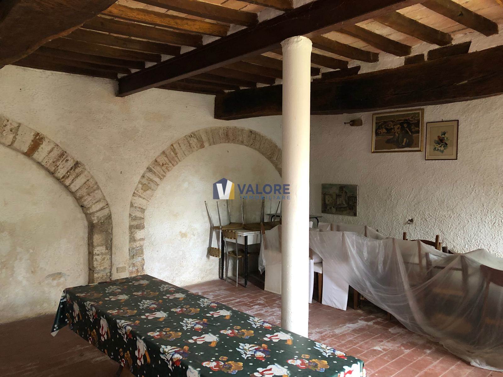 Tra Grutti e San Terenziano, in posizione riservata ma comodamente servita, immersa negli ampi e suggestivi paesaggi della campagna umbra, proponiamo in vendita una caratteristica porzione di casale tipico, della superficie commerciale complessiva di 133 mq, disposta su due livelli. L’abitazione si compone al piano primo di un ingresso, un tinello con cucinino, un luminoso soggiorno con camino, due camere da letto ed un bagno.